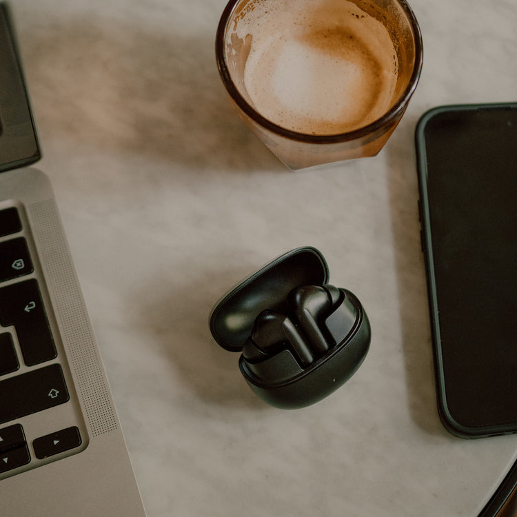 Veuillez noter qu’un câble USB-C n'est pas inclus. Nous vous encourageons à utiliser un câble USB-C que vous avez déjà pour charger vos écouteurs. Au besoin, nous en vendons séparément sur notre site. Vous pourrez l'ajouter à votre panier avant de compléter la transaction.